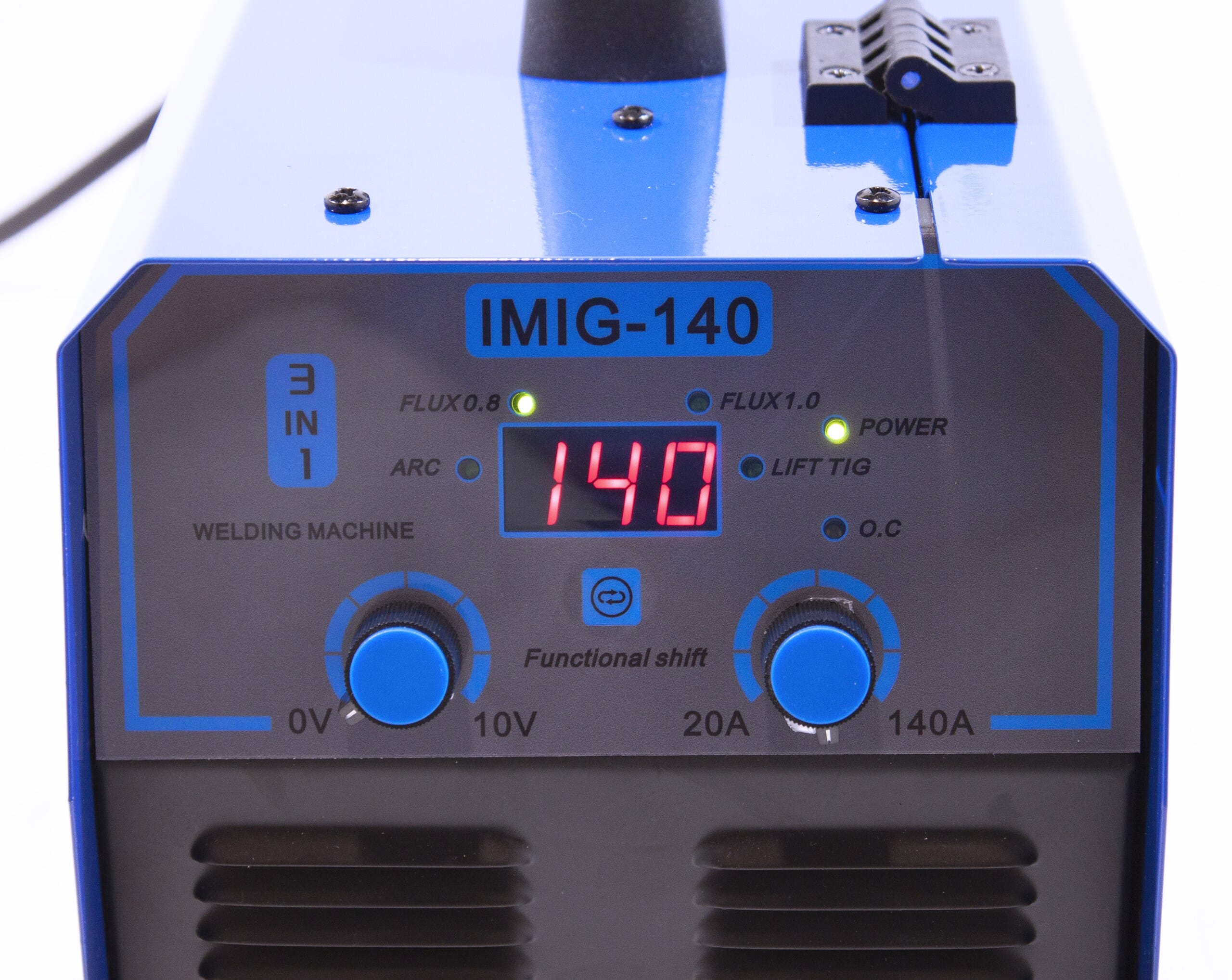 Solid og enkelt oppbygd sveiseapparat med IGBT deler fra Siemens. Enkel innstilling med 2 brytere for strøm og mating. Valg av sveisefunksjon ved å trykke på panelet. Tydelig display som viser amp og lys som viser innstilt sveisevalg. Matehjul for både 0,8 og 1mm tråd. Utstyrt med en spesial kopper og keramikk hylse som beskytter sveisepistoldeler mot sprut. Solide 70 volt i tomgangsspenning gir lett tenning av selv vanskelige elektroder. Sveiseområde i Amp er 20-140. Beregnet for 1 fase 230v. Må ha 16 amp treg sikring og ikke annet som trekker på kursen.