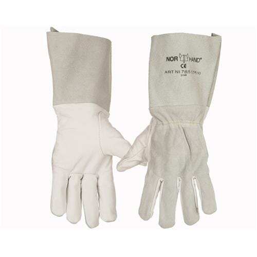 Norhand kombihanske i helforet skinn med 5" mansjett, størrelse 10. Strikk over håndleddet.