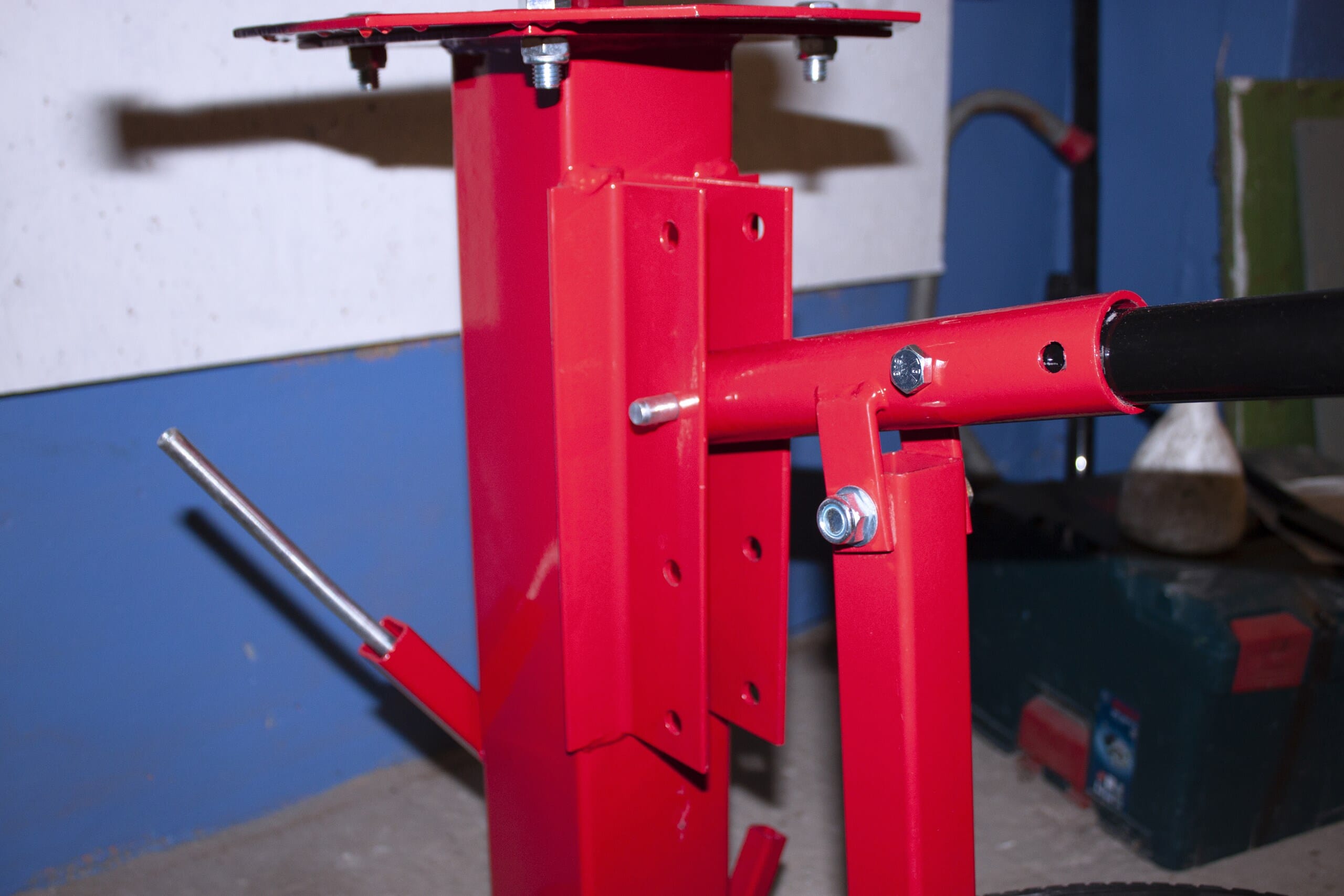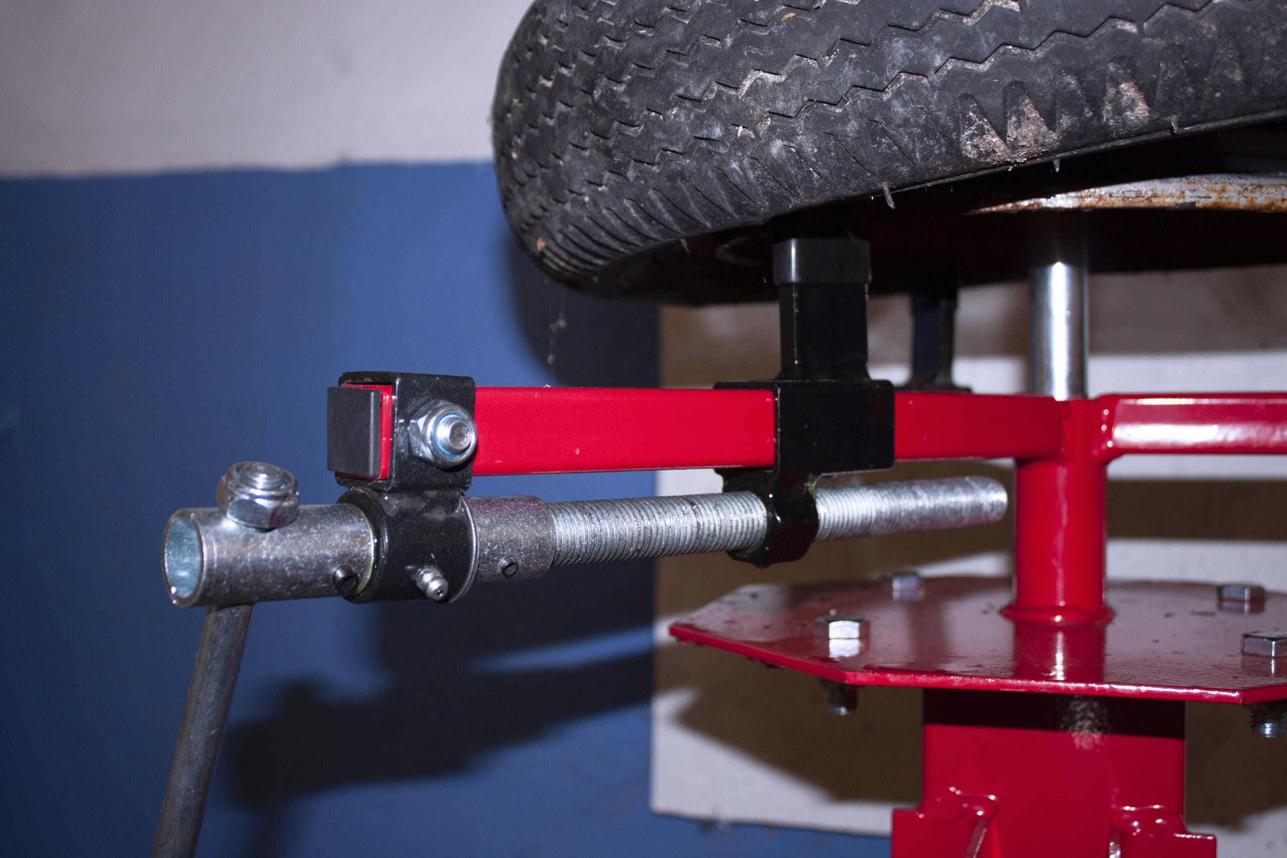 Bra hjelpemiddel for å ta dekk av og på felg. Klemmen nede fungerer veldig bra for å løsne alle typer dekk opp til personbilstørrelse.