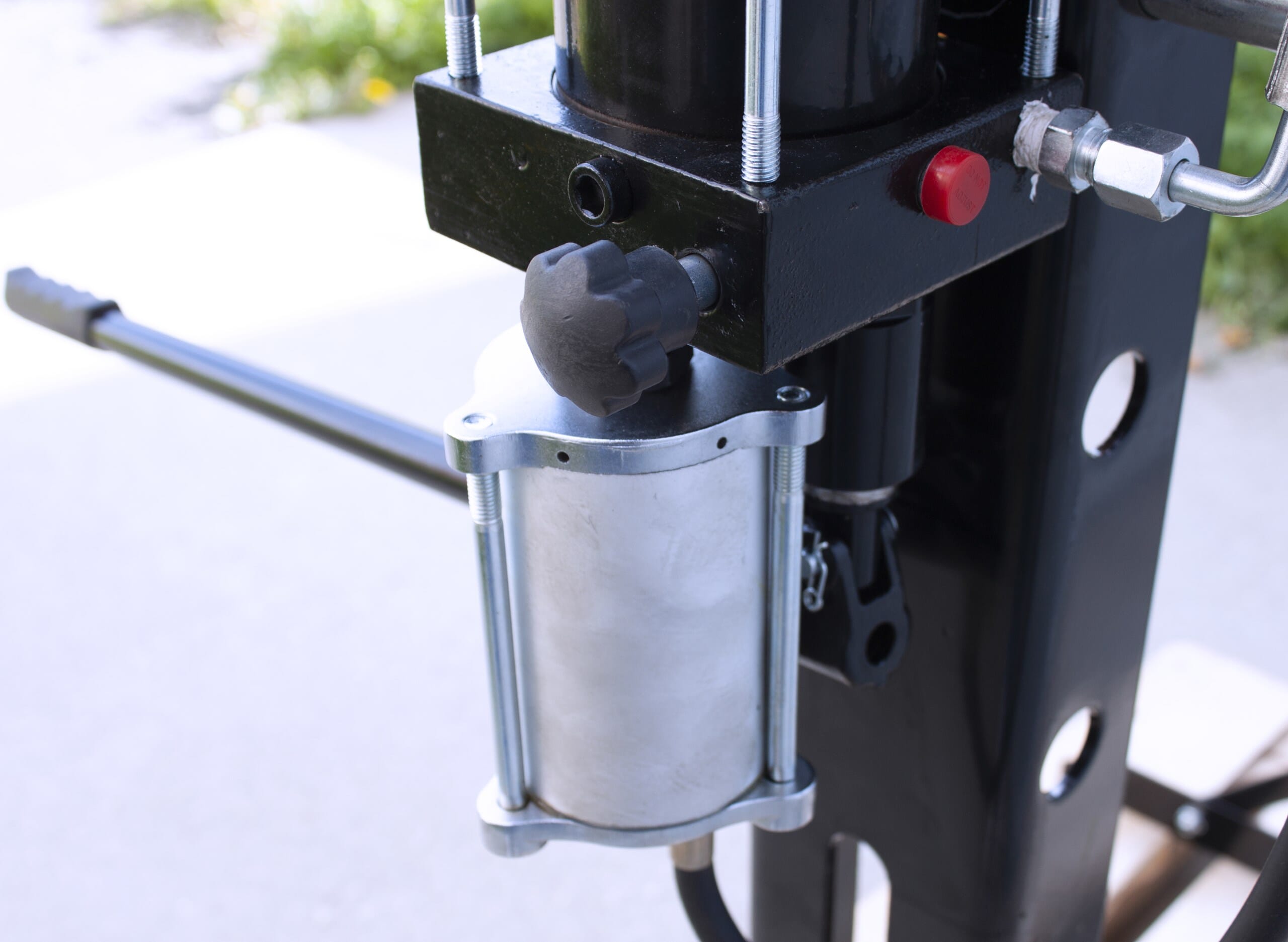 Utstyrt med sideveis justerbart stempel for fleksibel plassering. Leveres både med kombinert manuell og pneumatisk drift (luft) – enten via håndpumpe eller ved tilkobling til luftkompressor. Den medfølgende fotpedalen for luftstyring gir brukeren mulighet til å opprettholde trygg avstand under arbeidet.