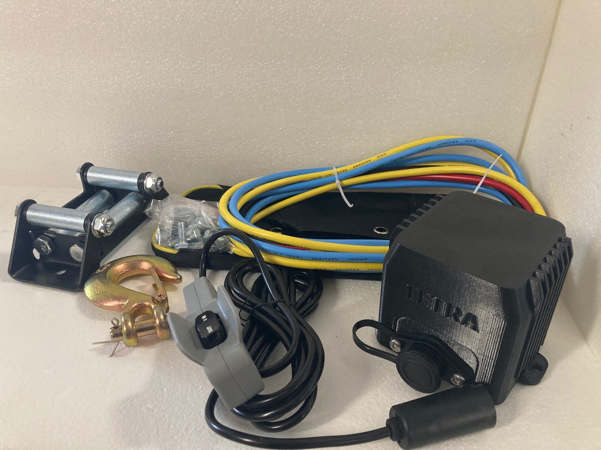 Dette er utgaven med rele som er innebygd i en boks (se ekstra bilde). Kun kablene mellom batteri/rele og rele/vinsj som må kobles. Bestilles radiostyring , kobler vi dette ferdig.